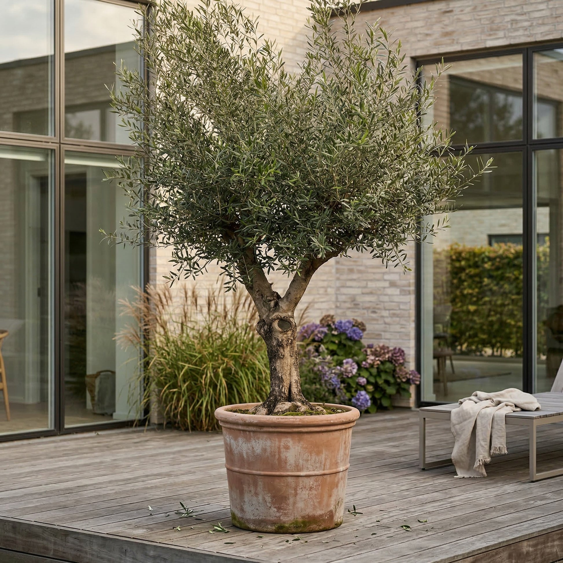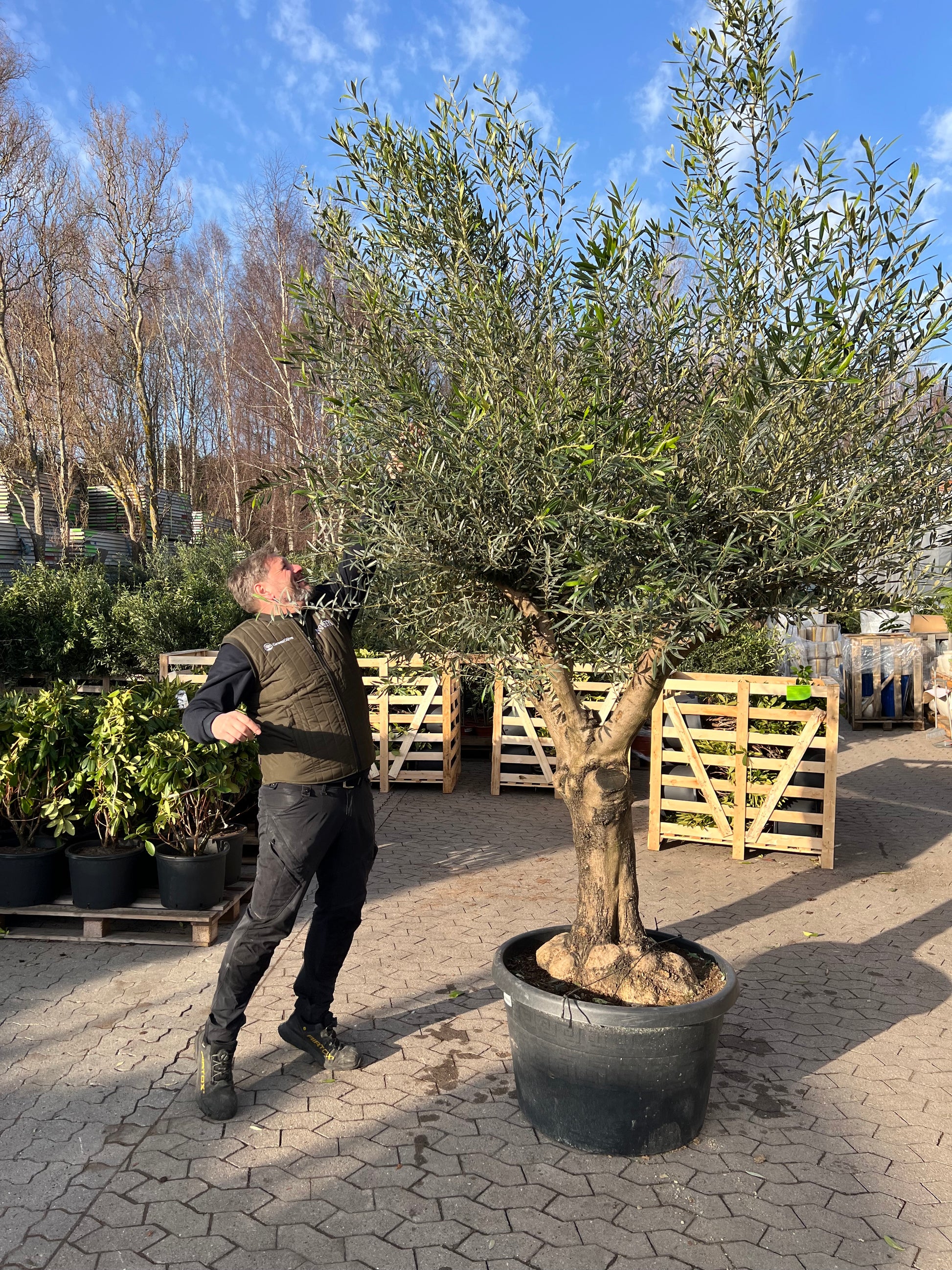 Oliventræet leveres uden krukken på billedet. Disse Betula kan tilkøbes eller som omplantet sæt her